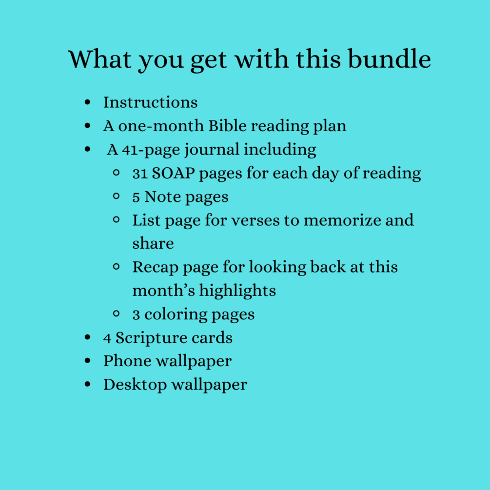 - A 41-page journal including 31 SOAP pages for each day of reading
