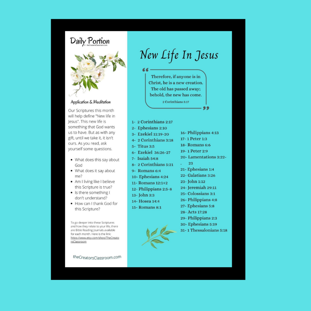 The New Life In Jesus Bible Reading Plan is a companion to the article, "36 Free Topical Bible Reading Plans."