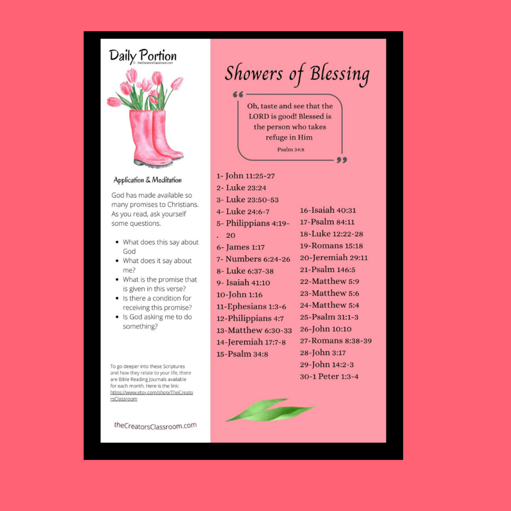 The Showers Of Blessing Bible Reading Plan is a companion to the article, "36 Free Topical Bible Reading Plans."