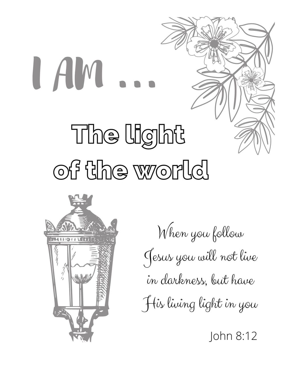 This is a one-page sampler from the 18-page coloring collection, "I AM - Who Jesus Is."