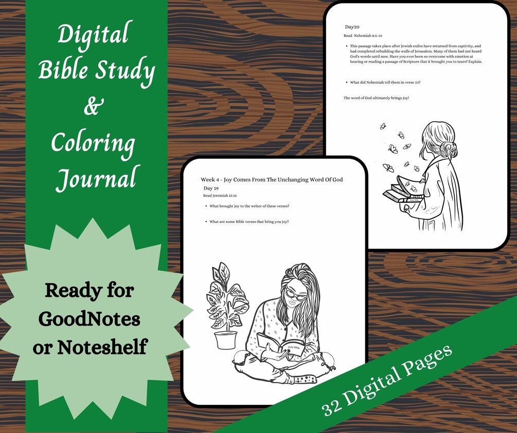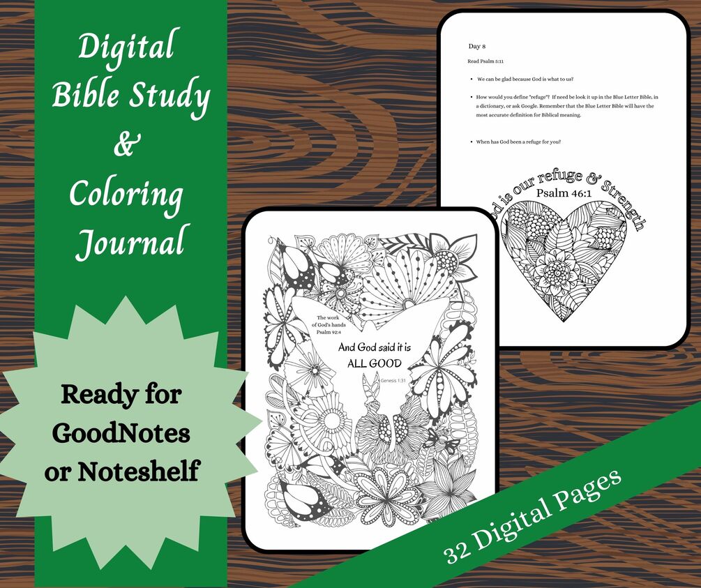 Digital Joyful Living Bible Study & Coloring Journal In Green