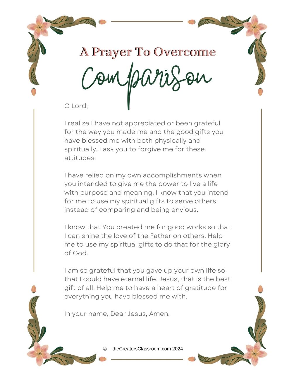 Free! A Prayer To Overcome Comparison