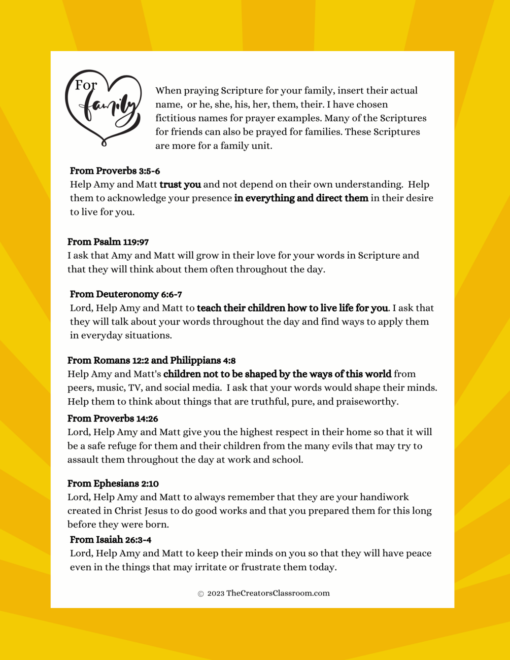 You'll get Scriptural prayers specific for your family